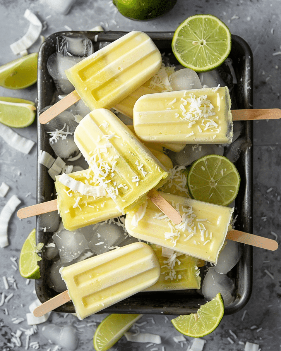 Use Lime Slices: For a more visually striking popsicle, add a slice of lime or a few lime wedges into each popsicle mold before filling with the mixture. This adds a burst of lime flavor as you eat them.