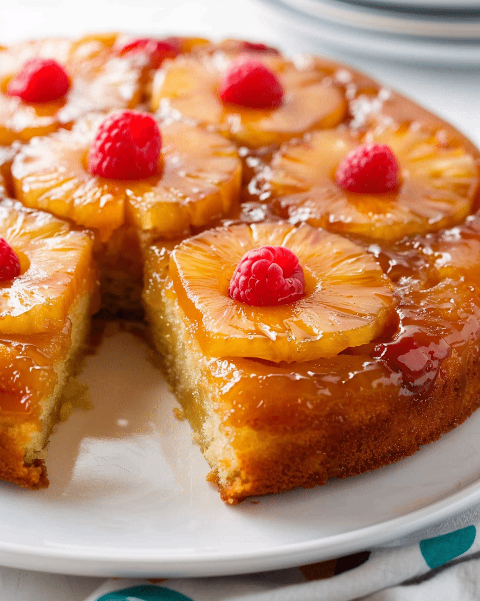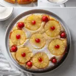 Pineapple Upside Down Cake is a classic dessert featuring caramelized pineapple rings and maraschino cherries baked beneath a moist vanilla cake, then inverted for a stunning and delicious presentation.