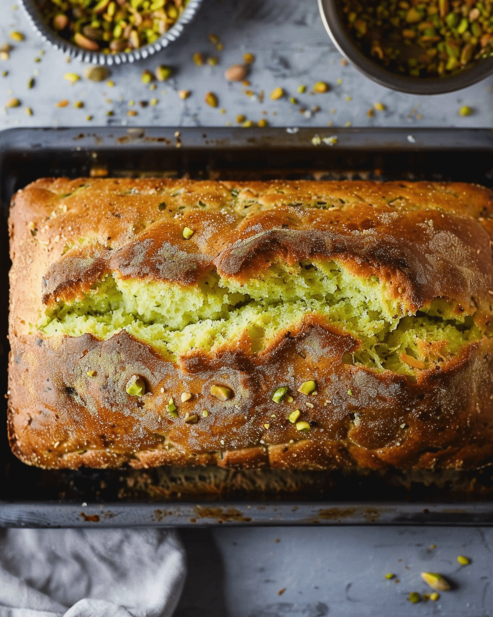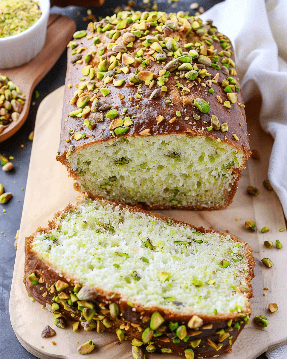 Pistachio Bread is a moist, subtly sweet quick bread made with instant pistachio pudding mix, a touch of almond extract, and optional chopped nuts. Its soft crumb and green hue make it perfect for brunches, holidays, or everyday snacking.