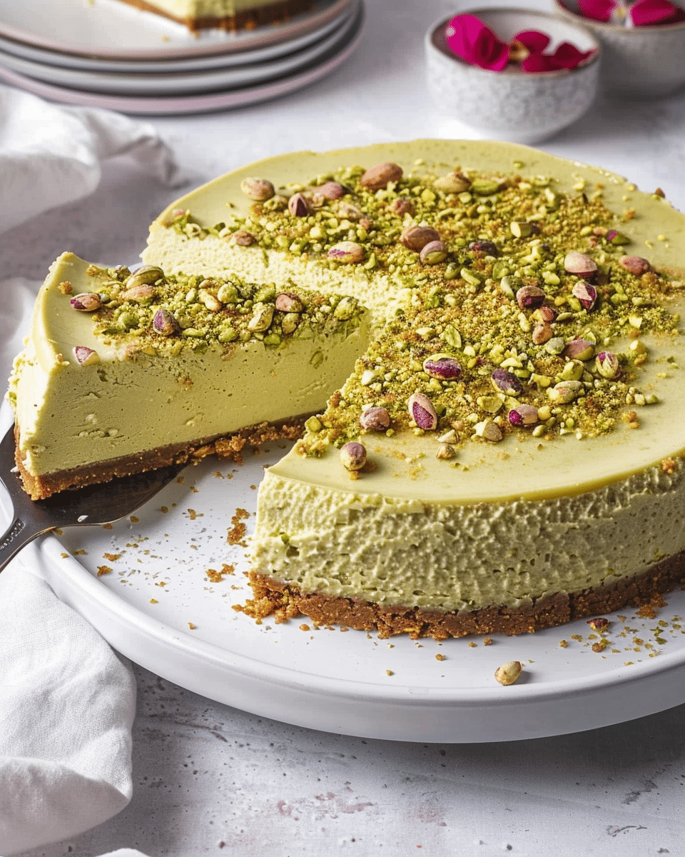 Pistachio cheesecake is a rich, creamy dessert with a nutty twist, combining smooth pistachio flavor with classic cheesecake texture on a buttery graham cracker crust. It’s elegant, flavorful, and perfect for special occasions.