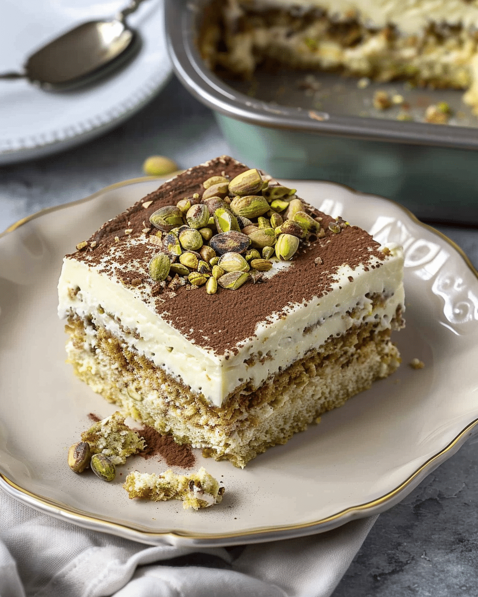 Chocolate Pistachio Tiramisu: Add grated dark chocolate between layers for extra richness.
