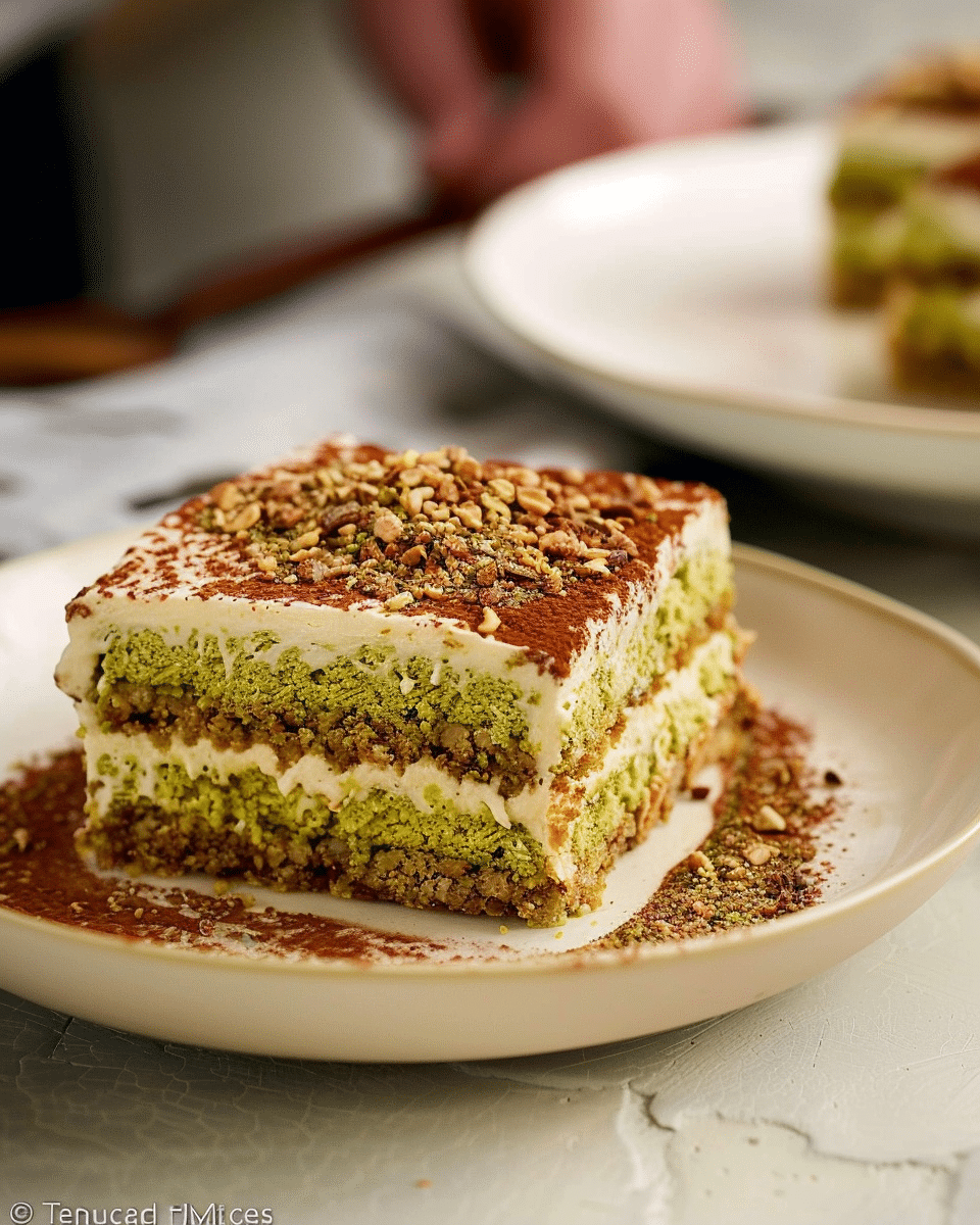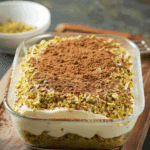 Pistachio Tiramisu is a refined, nutty take on the classic Italian dessert—featuring layers of coffee-soaked ladyfingers and pistachio-mascarpone cream, topped with chopped pistachios for added texture. It’s creamy, rich, and makes an impressive make-ahead dessert.