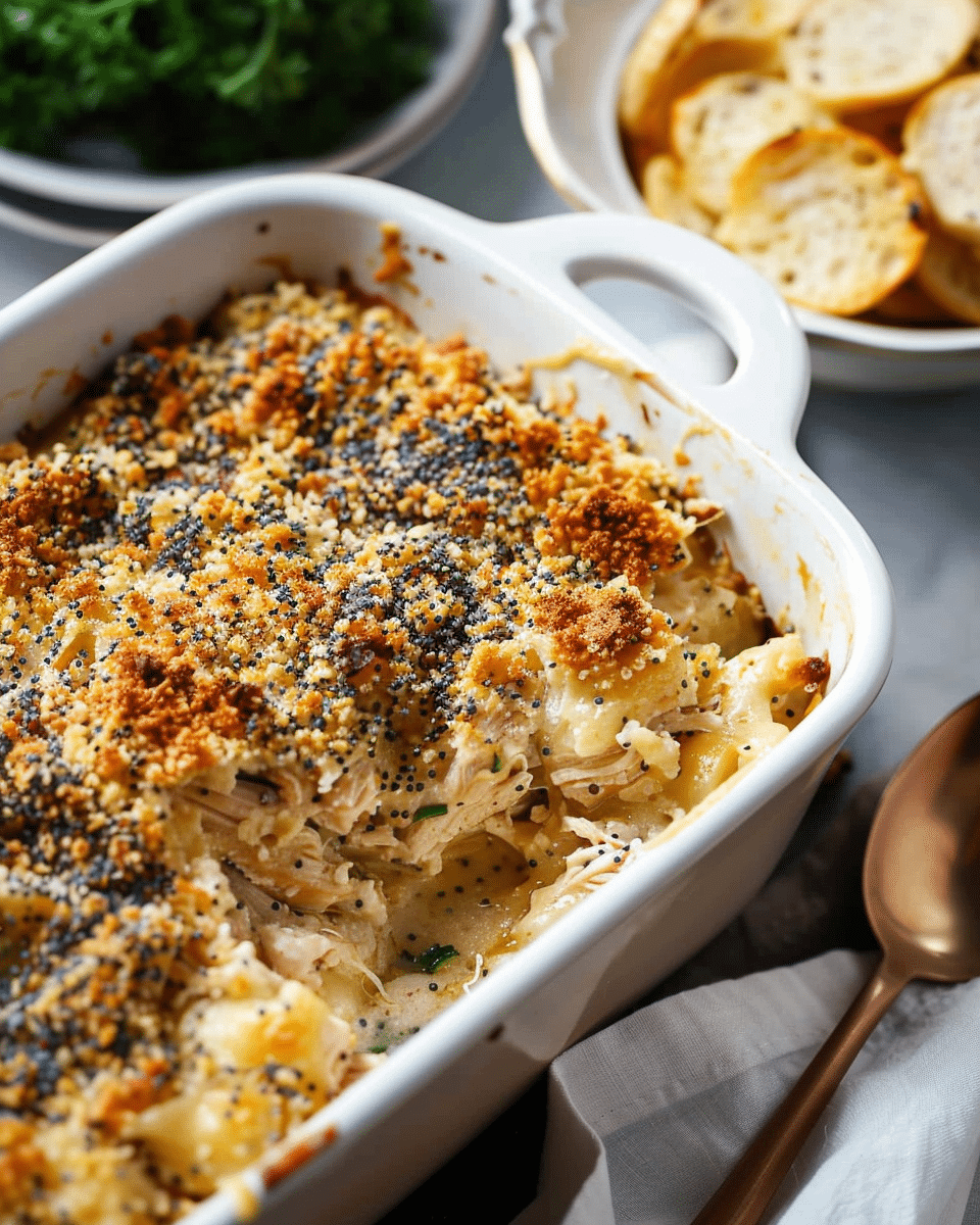Poppy Seed Chicken Casserole is a cozy, creamy, and crunchy favorite that’s sure to become a staple in your kitchen. It’s simple to prepare, endlessly customizable, and a guaranteed hit with both kids and adults. Whether for a weeknight dinner or a potluck dish, this comforting classic never disappoints.