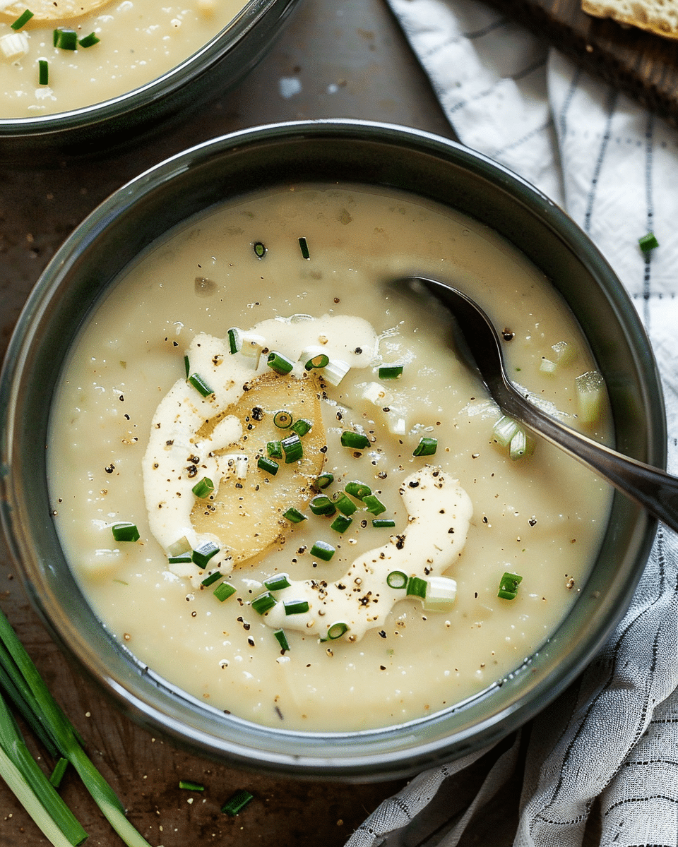 A creamy, comforting soup made with tender potatoes, mellow leeks, and a touch of cream. Simple yet elegant, it’s perfect as a cozy meal or a refined starter.