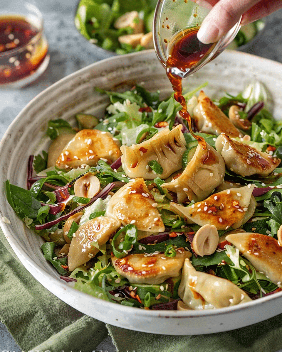 This potsticker salad is the perfect fusion of warm and cold textures. The crispy dumplings bring a savory bite, while the crisp lettuce, shredded vegetables, and flavorful dressing balance everything with freshness. It’s easy to make, customizable, and works great as a light dinner, quick lunch, or even as a party dish. If you love dumplings but want a healthier, veggie-packed meal, this recipe will quickly become a favorite.