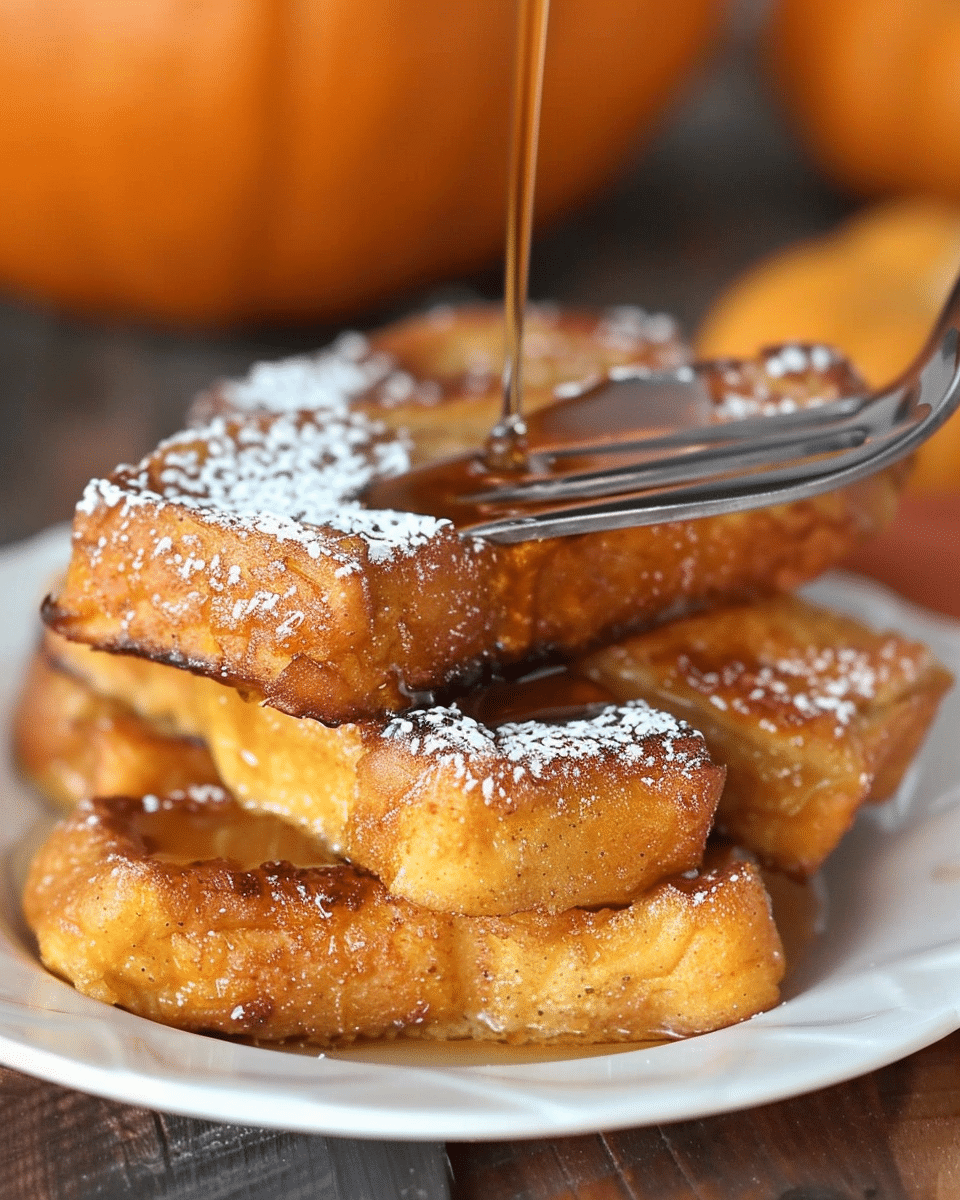 Pumpkin French Toast Sticks are a cozy fall twist on the classic breakfast favorite. Thick slices of bread are dipped in a spiced pumpkin custard, then cooked to golden perfection—crispy outside, soft inside, and full of warm autumn flavors.