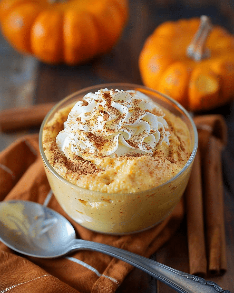 Chilled Pumpkin Cheesecake Mousse: Add 4 oz of softened cream cheese to the pumpkin base and blend it for a tangy, cheesecake-like texture.