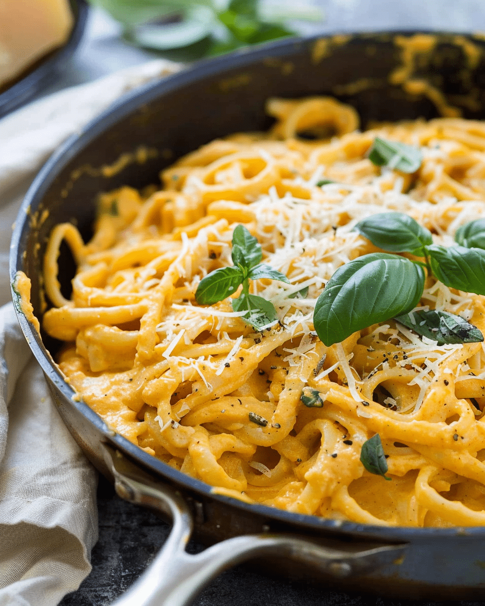 Use plant-based cream and cheese for a vegan version.Add mushrooms, spinach, or kale for extra texture and nutrients.Use coconut milk for a sweet and creamy variation.Freeze the sauce without pasta for longer storage.Don’t use pumpkin pie filling—it’s sweetened and spiced.