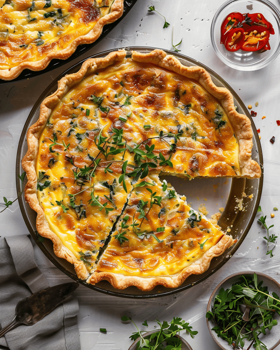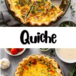 Quiche is a classic savory pie made with a creamy custard of eggs and milk or cream, baked in a buttery crust with cheese and your favorite vegetables or meats. It’s versatile, satisfying, and perfect for any meal of the day.