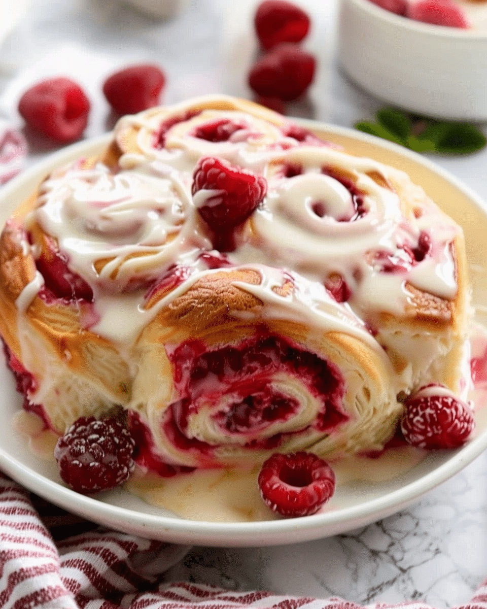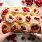 Raspberry swirl sweet rolls are soft, fluffy pastries filled with a sweet-tart raspberry filling and topped with a light glaze or cream cheese frosting. Perfect for breakfast, brunch, or an indulgent snack, these eye-catching rolls offer a fruity twist on classic cinnamon rolls.