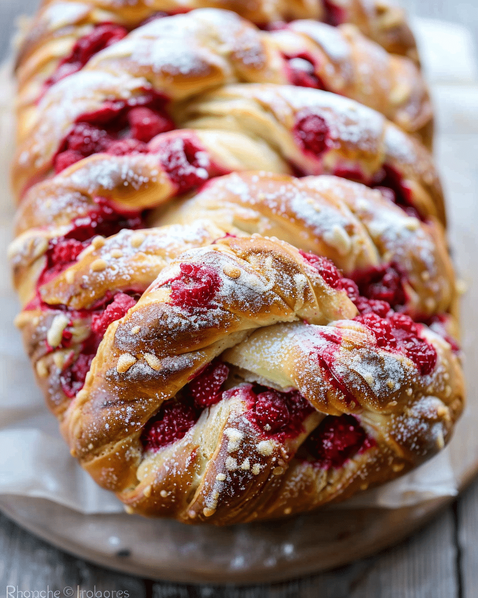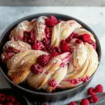 Raspberry twist bread is a beautifully braided sweet bread filled with raspberry jam or compote. With its vibrant swirls, fluffy texture, and fruity flavor, it’s perfect for breakfast, brunch, or an elegant dessert centerpiece.