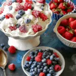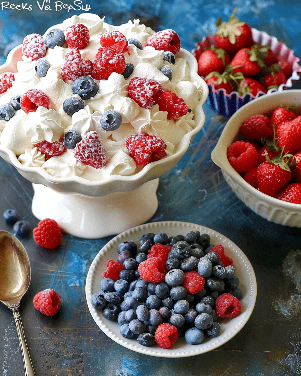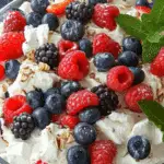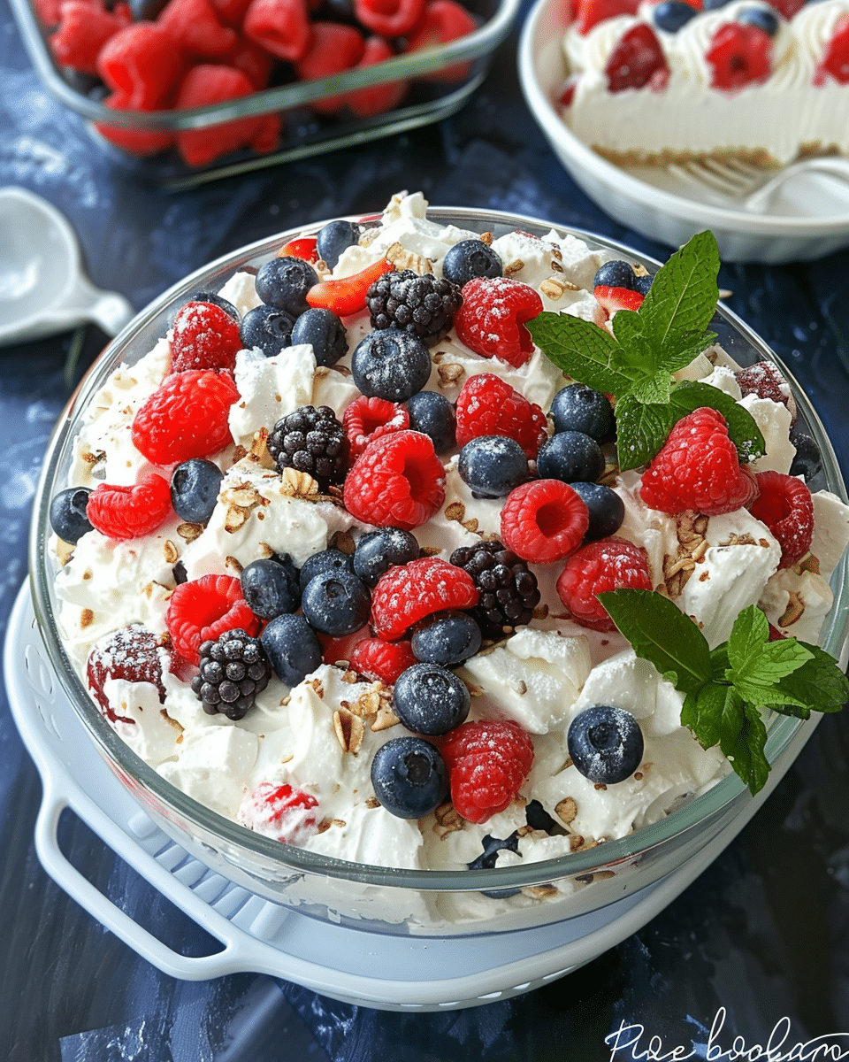 You’ll love this cheesecake salad for its perfect balance of creamy and fruity textures. It’s cool, refreshing, and comes together in minutes—no baking required. The red, white, and blue color scheme makes it especially fitting for the Fourth of July or Memorial Day, but it’s also a crowd-pleaser for potlucks and cookouts. Sweet, tangy, and rich, it’s a fun twist on traditional fruit salad that feels indulgent but is incredibly simple to prepare.