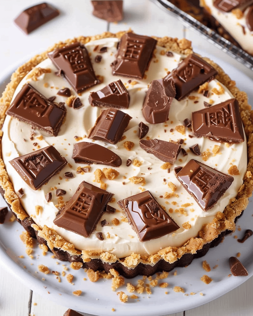 Use creamy peanut butter for the smoothest cheesecake texture.Chill the pie fully before adding the drizzle and slicing.Mini Reese’s are perfect for topping and mixing into the filling.For a no-bake version, substitute the filling with a whipped peanut butter mixture.