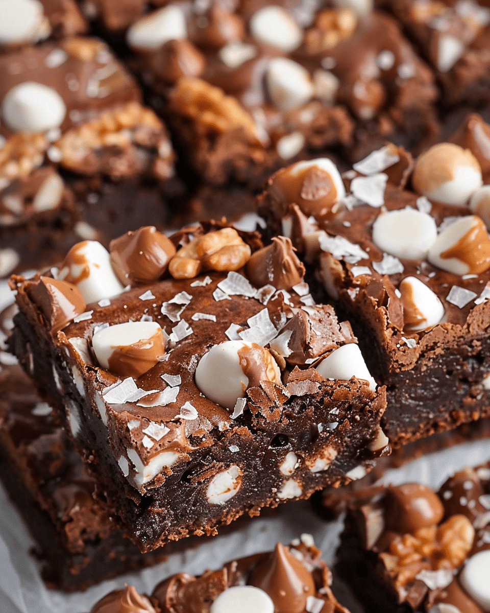 Fudgy brownies topped with gooey marshmallows, crunchy nuts, and melty chocolate for the ultimate rocky road twist. Rich, chewy, and perfect for sharing at potlucks, bake sales, or family dessert nights.
