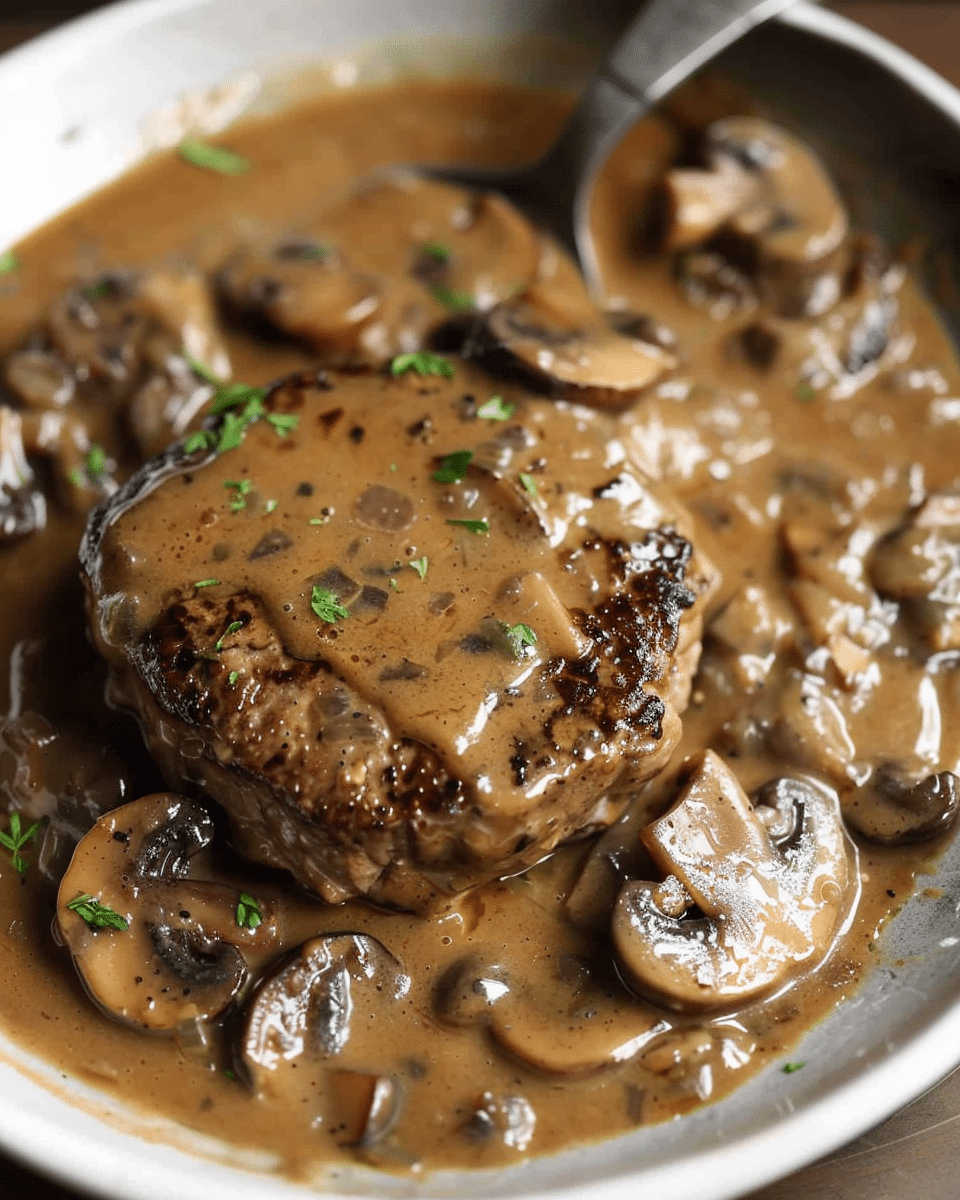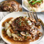 Salisbury Steak with Mushroom Gravy is a classic comfort food dish featuring juicy beef patties seasoned with pantry staples and simmered in a rich mushroom-onion gravy. It’s an easy and budget-friendly meal perfect for cozy family dinners.