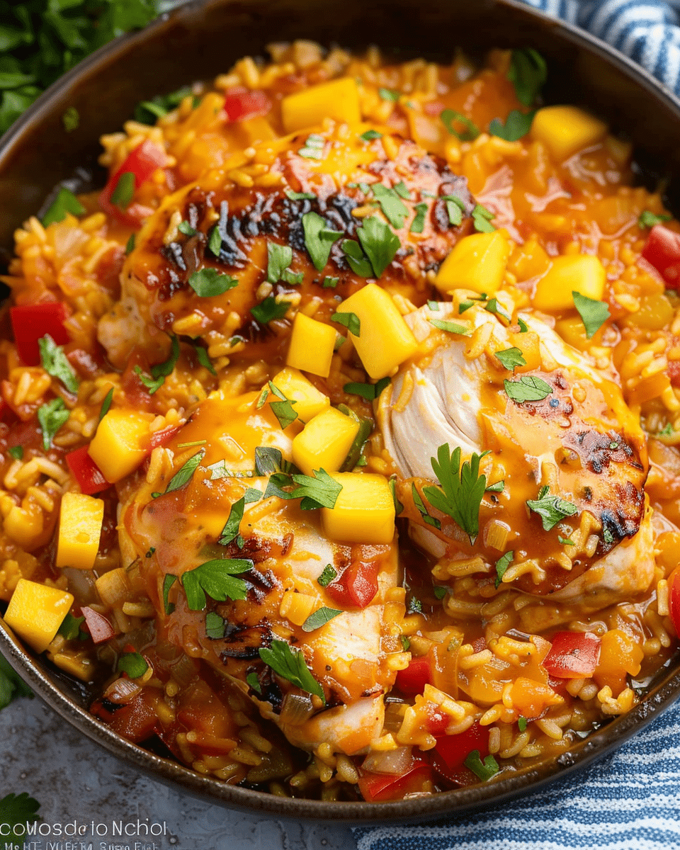 Simmer for 20–25 minutes, until rice is cooked and chicken is done.