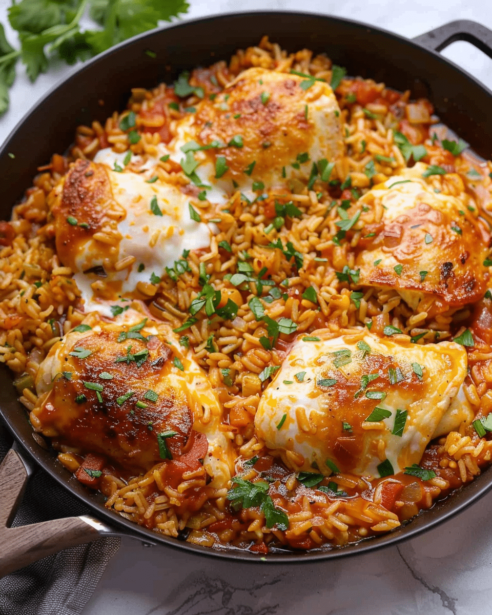 Simmer for 20–25 minutes, or until the rice is cooked and the chicken is fully done.