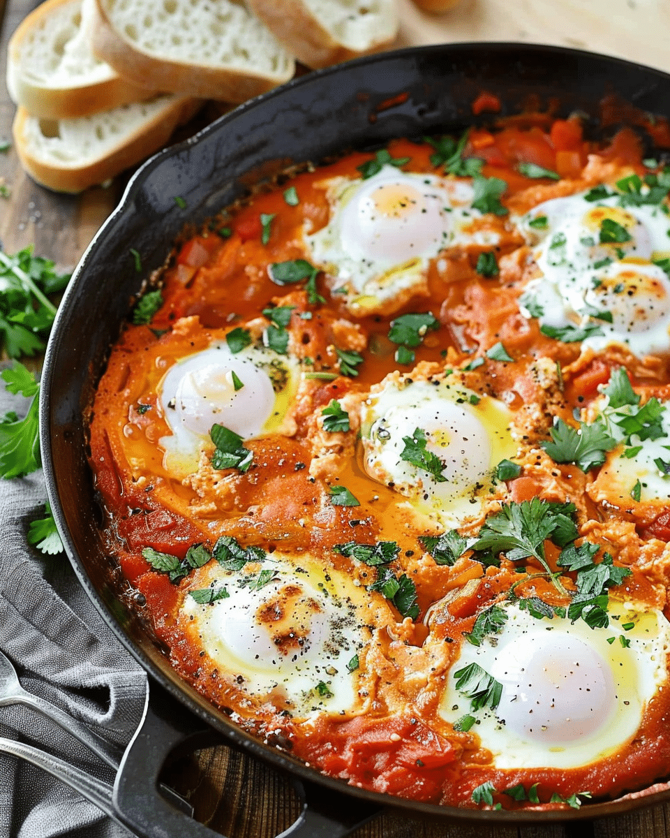 Spicy Shakshuka: Increase chili flakes or add harissa for more heat.