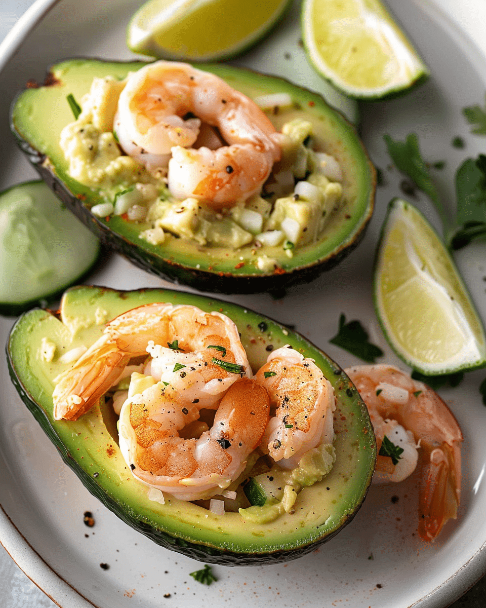 Prepare shrimp mixture ahead, but fill avocados just before serving to avoid browning.Toss avocado with lime juice to slow browning if prepping slightly in advance.Customize the heat by adding jalapeño or hot sauce.Use chopped small shrimp for easier scooping and eating.Leftover filling can be used in tacos, wraps, or salads.