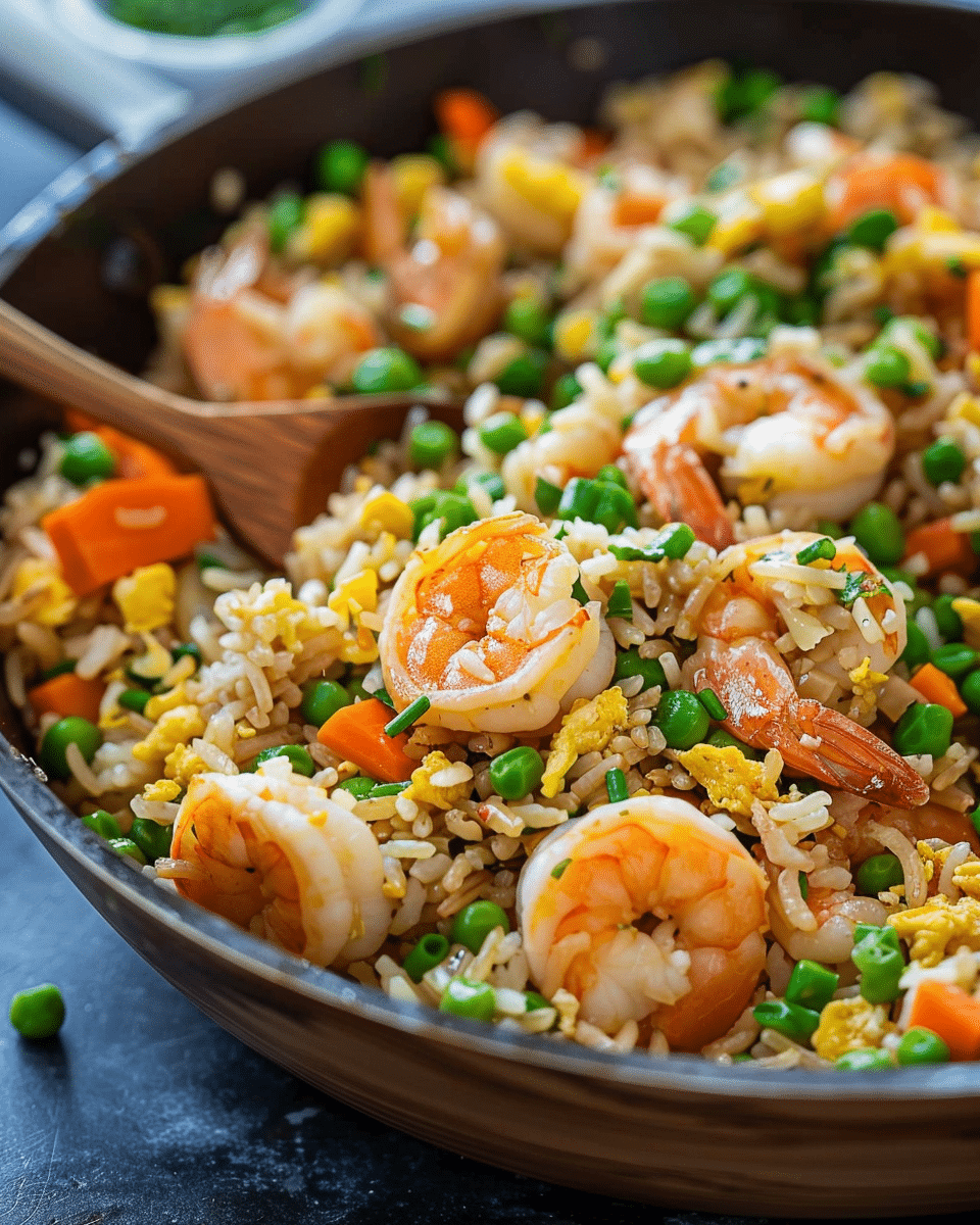 Shrimp Fried Rice is a quick and flavorful dish with succulent shrimp, savory vegetables, and fragrant rice, stir-fried with soy sauce and seasonings for a satisfying meal.