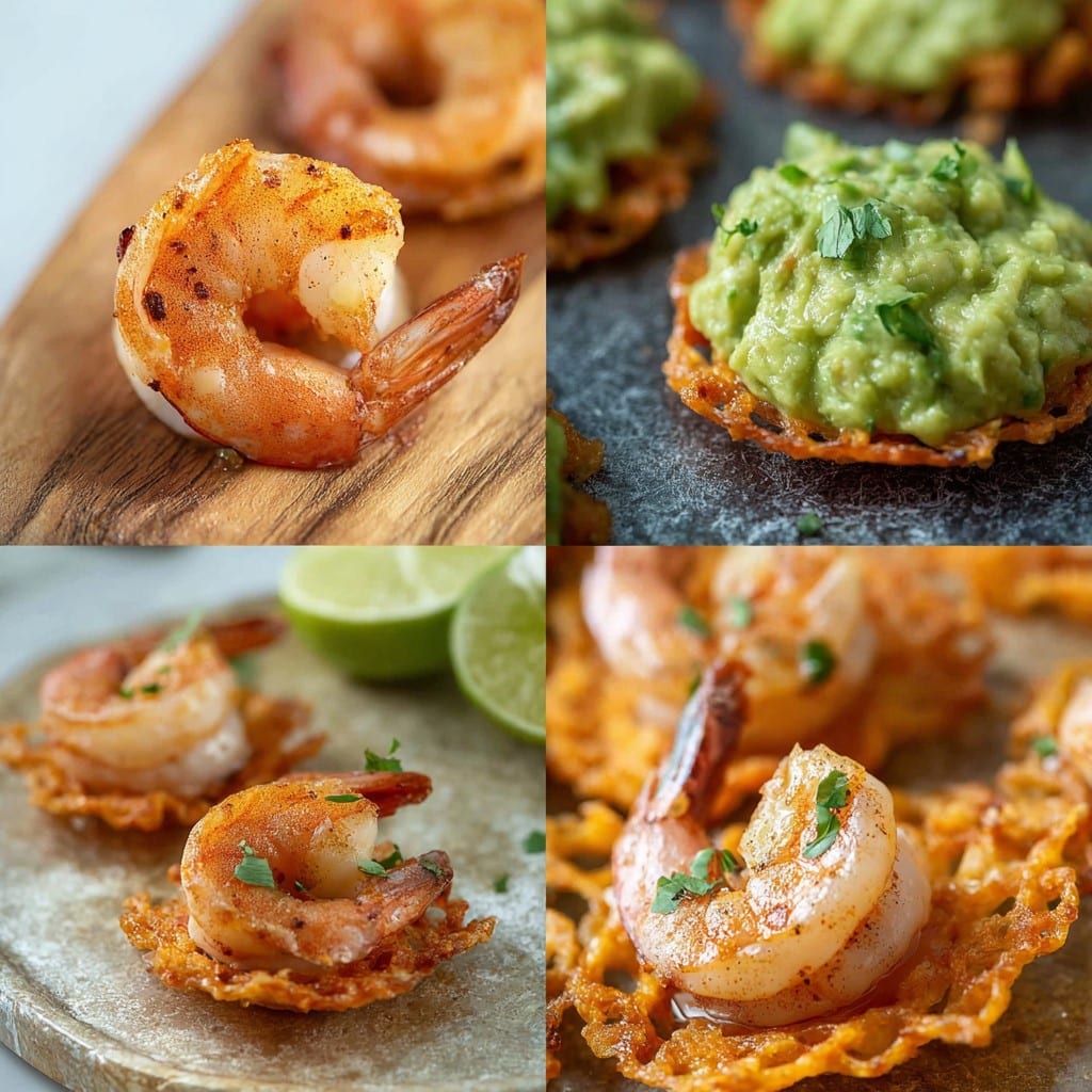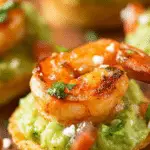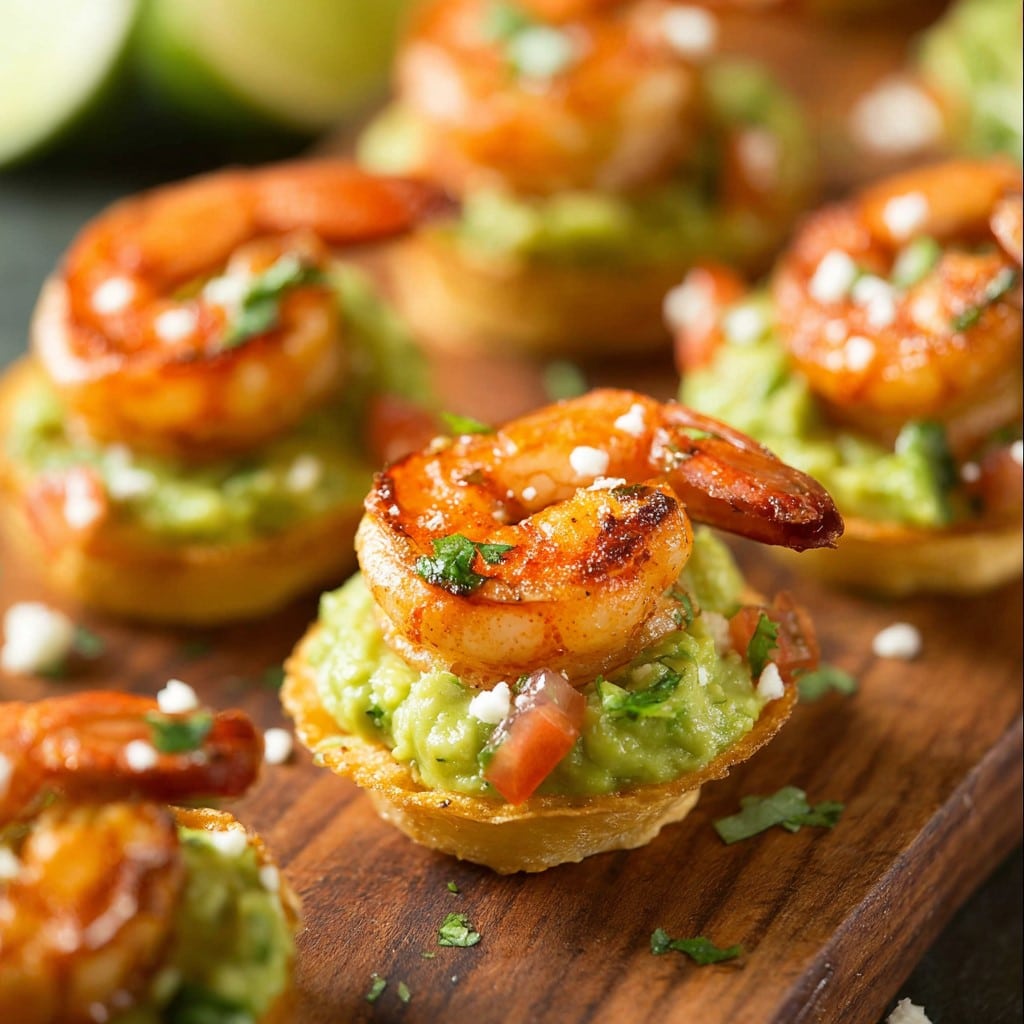 Shrimp guacamole bites are fresh, flavorful appetizers featuring creamy homemade guacamole topped with seasoned shrimp, served on crispy or refreshing bases like tortilla chips, cucumber slices, or toasted baguette rounds. They’re perfect for parties or casual snacking.