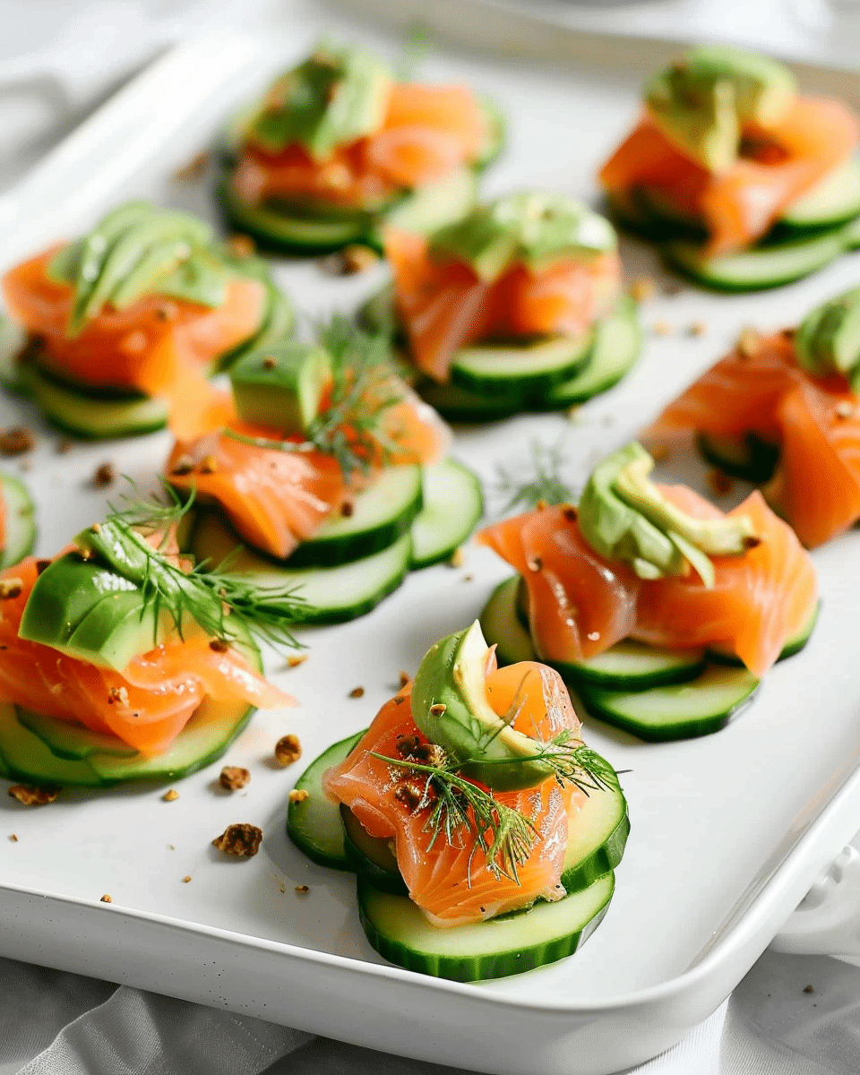 Smoked Salmon, Avocado and Cucumber Bites are a simple yet impressive appetizer that delivers on freshness, flavor, and visual appeal. Whether you’re entertaining guests or treating yourself to a nutritious snack, these bites are the perfect combination of crisp, creamy, and savory. Quick to assemble and endlessly versatile, this recipe is a must-have in your appetizer rotation.