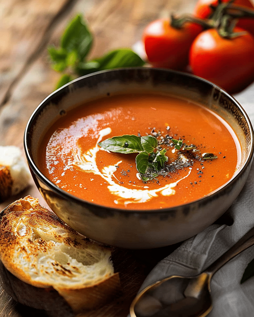 Smoky Roasted Tomato Soup is a rich and comforting dish made by roasting ripe tomatoes, garlic, and onions, then blending them into a velvety soup with a smoky kick from paprika. It’s cozy, flavorful, and perfect with crusty bread or a grilled cheese sandwich.