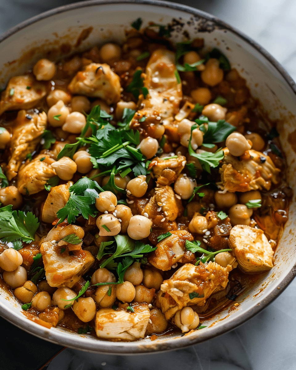 The chickpeas bring a nutty, creamy texture that complements the tender chicken and allows the dish to stand on its own (without needing lots of extra sides).It’s adaptable — you can make it quickly on the stovetop or roast everything in one sheet‑pan in the oven. Good for weeknights or for impressing guests.