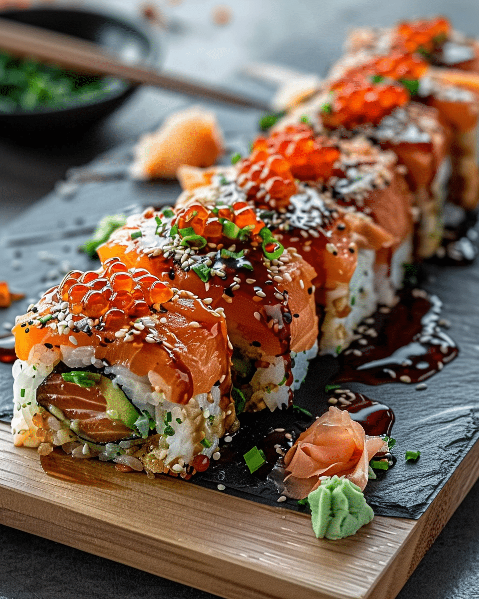 Deluxe Toppings: Garnish with tobiko, pickled ginger, or spicy mayo drizzle.