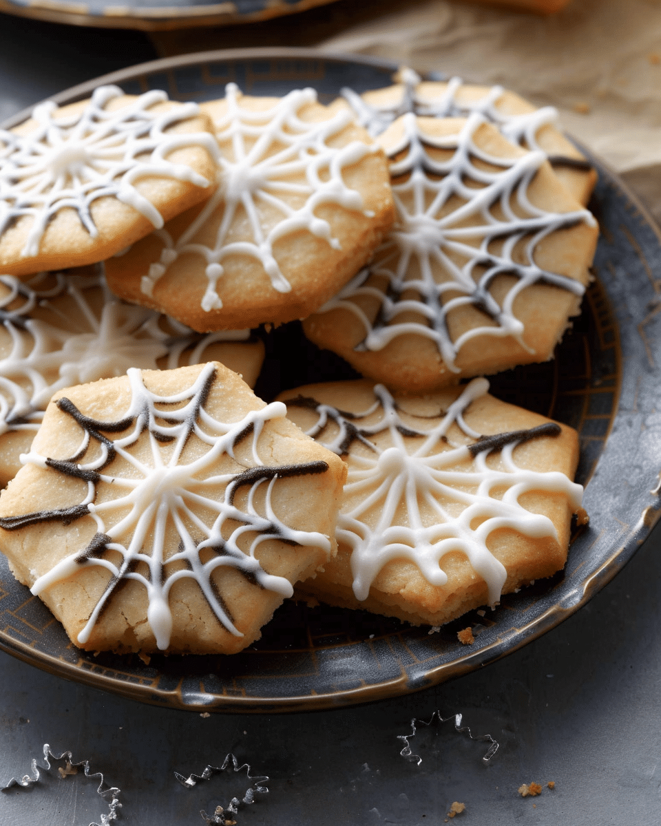 Spiderweb Shortbread is a buttery Halloween treat featuring classic melt-in-your-mouth shortbread cookies topped with a spooky spiderweb icing design. Perfect for parties or festive baking, these cookies are simple yet striking.