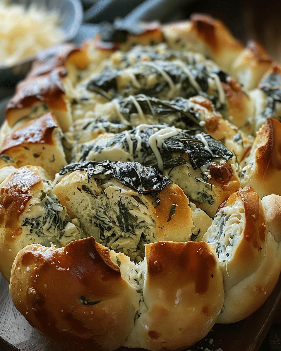 This recipe is a total win for both flavor and presentation. It’s loaded with melty cheese, tender spinach, briny artichokes, and a touch of garlic, all baked into golden, fluffy bread you can pull apart piece by piece. It’s easy to assemble, bake, and serve—and it looks just as amazing as it tastes. Whether served as an appetizer or centerpiece snack, this dip-stuffed bread is irresistible.