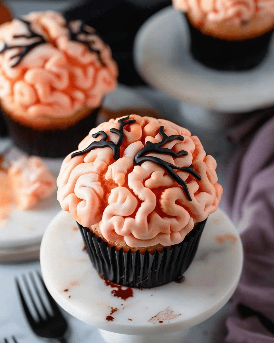 These cupcakes are the perfect mix of festive fright and indulgent flavor. The realistic brain decoration adds a wow factor, while the sweet jam filling gives a creepy but tasty “bloody” center. They’re fun to make, easy to customize, and ideal for both kids and adults during the Halloween season. Plus, they’re a great way to get creative in the kitchen!