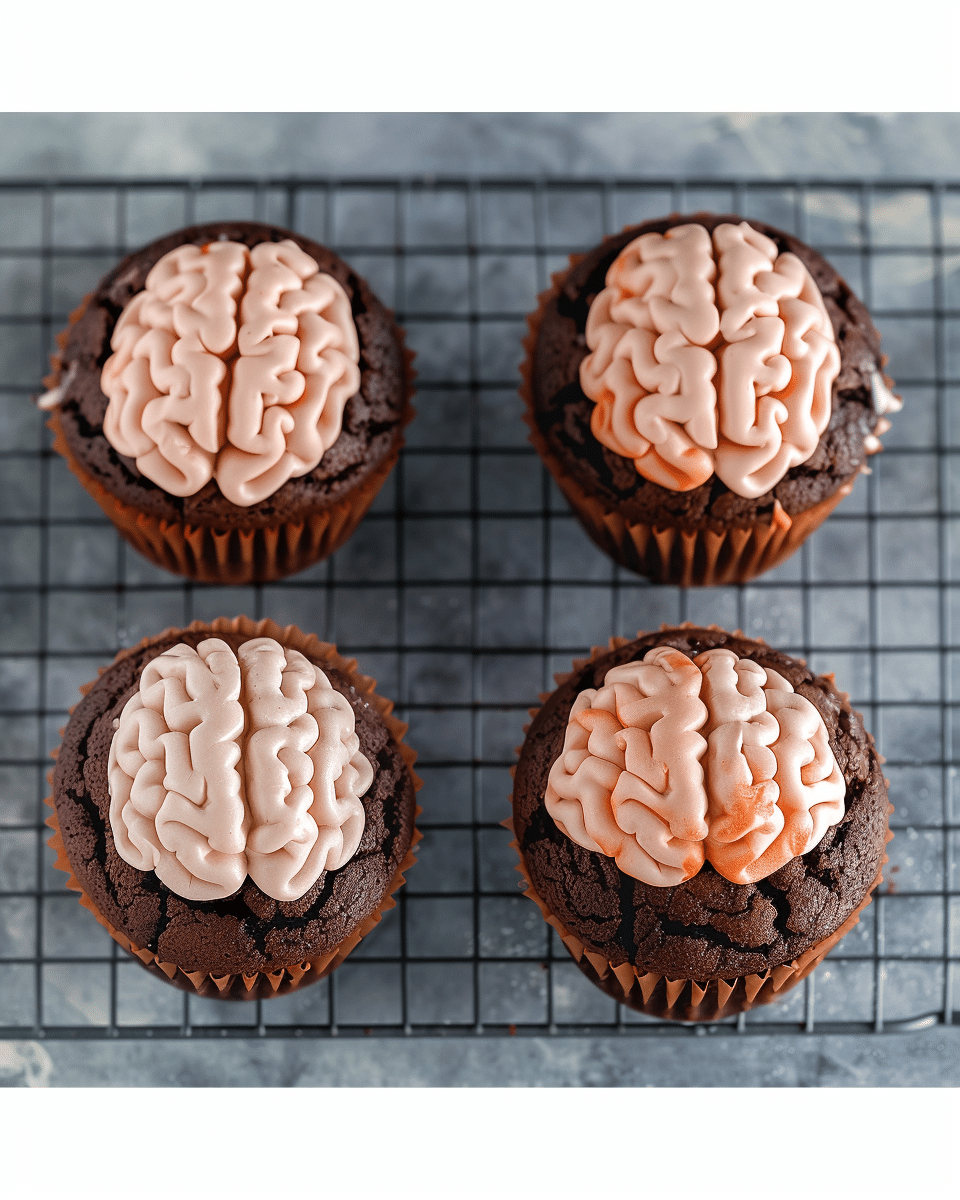 Use a small piping tip and pipe squiggly lines down each half of the cupcake in a mirrored pattern to mimic brain folds.