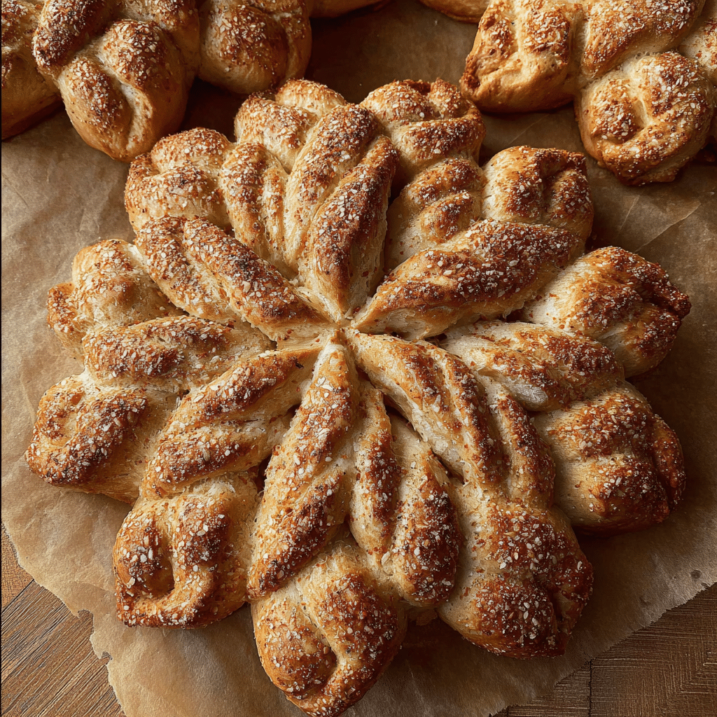 This star bread is a soft, fluffy pull-apart bread shaped into a stunning star pattern. Perfect for holidays or special occasions, it can be filled with sweet or savory layers like chocolate, cinnamon, or cheese for a beautiful and delicious centerpiece.