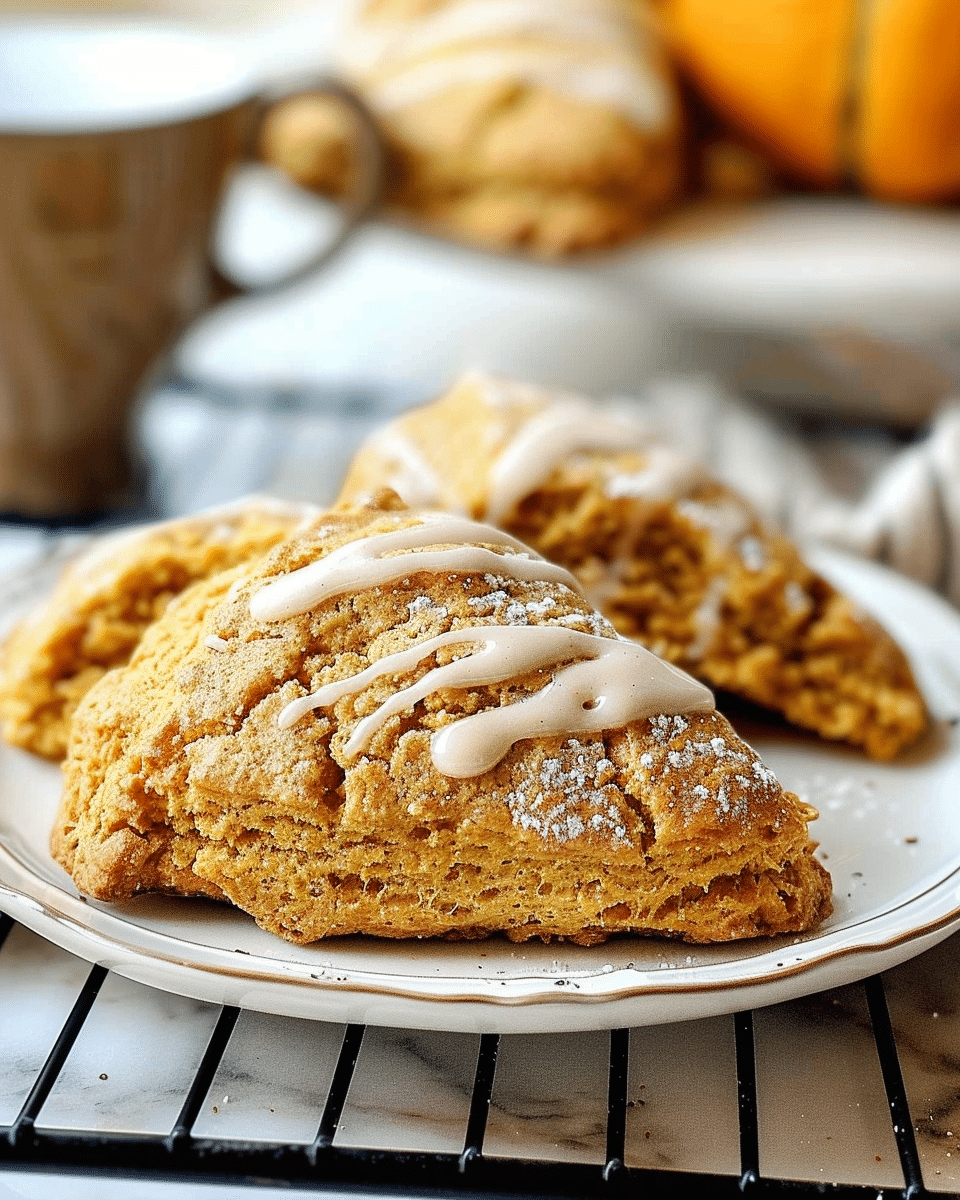 Starbucks Pumpkin Scones are tender, warmly spiced pastries topped with a sweet vanilla glaze and spiced icing drizzle. These homemade scones capture the cozy flavors of fall and are perfect for breakfast or an afternoon treat.