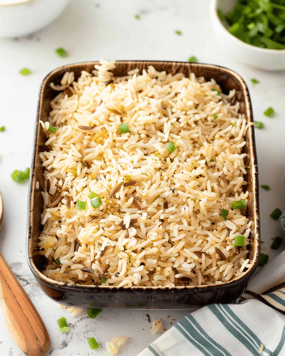 Cheesy twist: Sprinkle grated cheese (such as cheddar or parmesan) over the rice during the last 5–10 minutes of baking to let it melt.