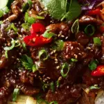 This sticky Asian beef is a quick and flavorful dish made with tender beef strips coated in a rich, glossy sauce. Perfect for busy nights, this easy sticky Asian beef recipe delivers sweet, savory, and umami flavors in under 30 minutes.