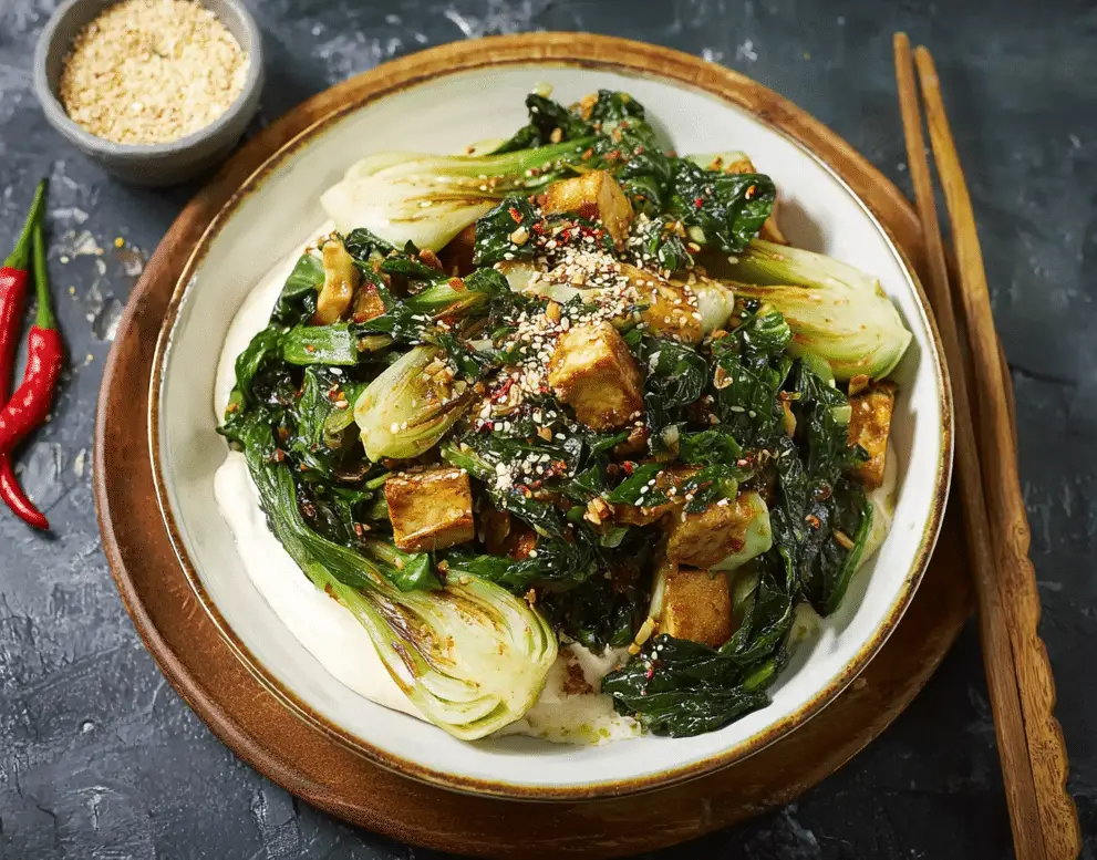 This Stir-Fried Bok Choy With Tofu Cream is a quick, healthy, and flavorful plant-based dish featuring crisp bok choy coated in a silky, savory tofu sauce. Perfect for vegan and vegetarian meals, this easy stir-fry is light, nutritious, and satisfying.