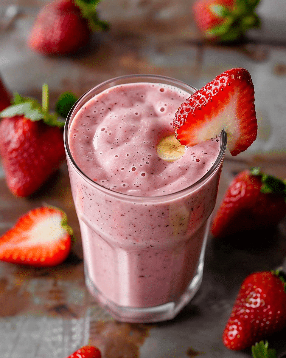 Use a ripe banana for the best natural sweetness.Frozen strawberries help create a thick, cold smoothie texture.Customize with protein powder, greens, or other fruits as desired.Best served immediately but can be refrigerated for up to 24 hours.For a vegan version, use plant-based milk and yogurt.
