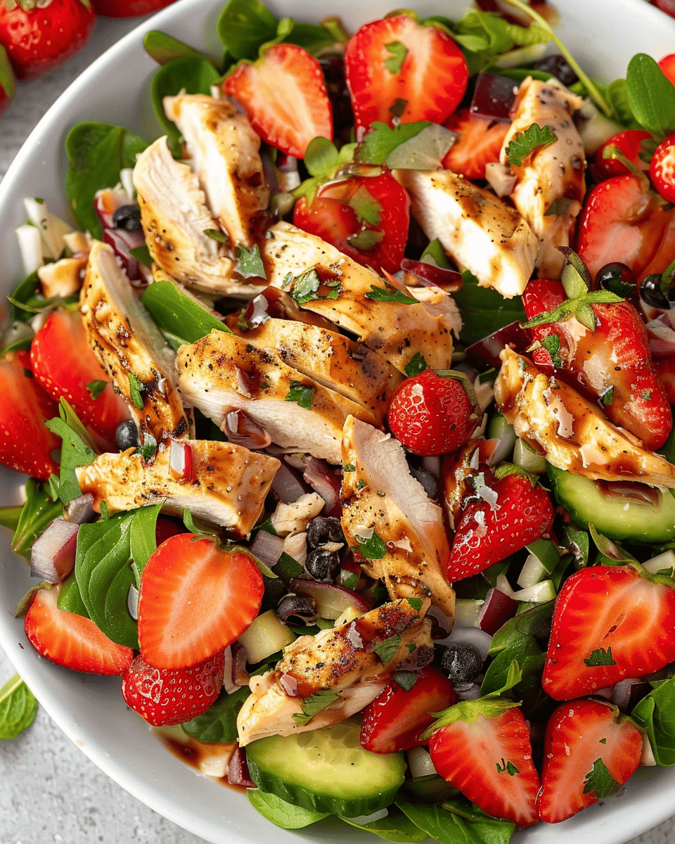 Strawberry Chicken Salad is a vibrant, refreshing salad that pairs grilled chicken with sweet strawberries, mixed greens, creamy cheese, and crunchy nuts, all topped with a tangy vinaigrette. It’s perfect for a light meal that’s both nutritious and flavorful.