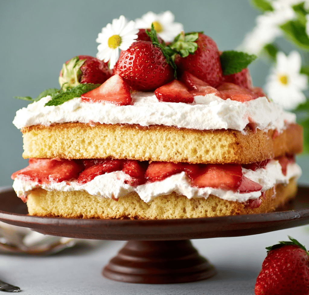Strawberry Shortcake Cake is a light, fluffy dessert layered with fresh strawberries and whipped cream. This Strawberry Shortcake Cake recipe is perfect for spring and summer gatherings, offering a fresh, homemade flavor that’s both elegant and easy to make.