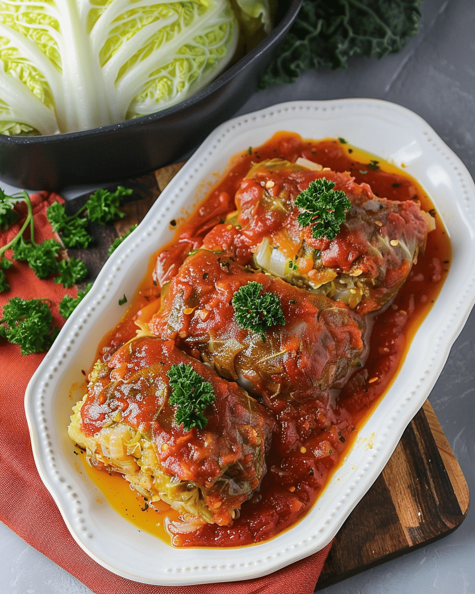 Stuffed Cabbage Rolls are incredibly flavorful and comforting. The slow simmering allows the savory meat and rice filling to absorb the tangy sweetness of the tomato sauce, while the cabbage becomes soft and melt-in-your-mouth tender. They’re great for feeding a family, perfect for leftovers, and they freeze well, making them ideal for make-ahead meals.