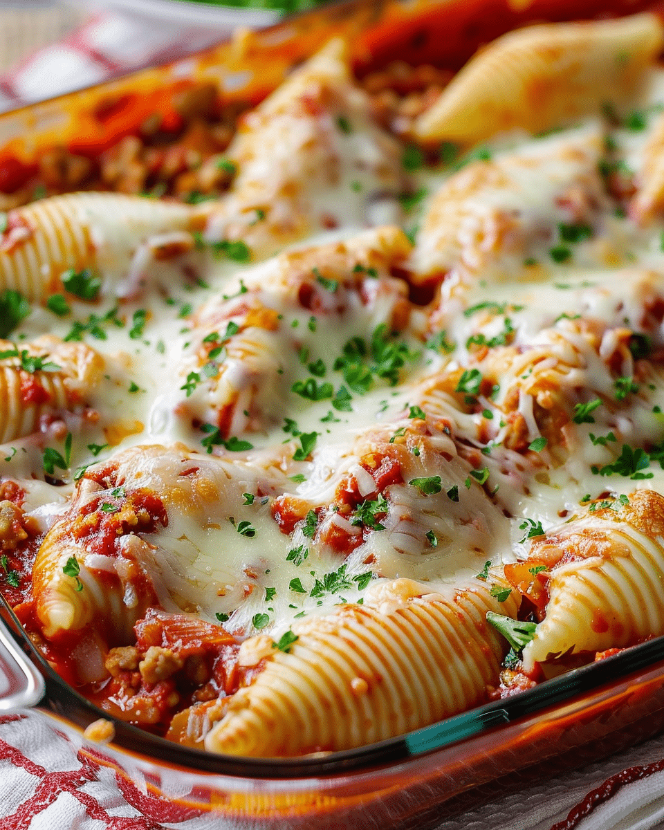 Stuffed Shells are a hearty Italian-inspired baked pasta dish featuring jumbo shells filled with creamy ricotta, mozzarella, and Parmesan, all smothered in savory marinara sauce and baked to perfection. A comforting and crowd-pleasing meal.