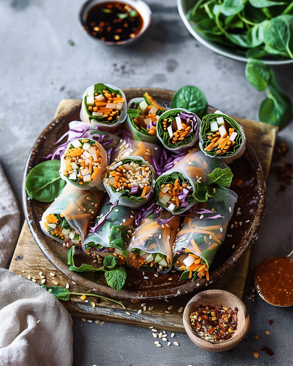 Summer Rolls are healthy, colorful, and incredibly versatile. They’re naturally gluten-free, easy to customize for different diets, and fun to make with family or guests. The combination of crunchy vegetables, fresh herbs, and chewy rice paper makes for a satisfying bite every time. Plus, they pair perfectly with peanut sauce, hoisin, or nuoc cham (Vietnamese dipping sauce), bringing bold, irresistible flavor.