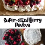 Super-sized Berry Pavlova is a classic gluten-free dessert featuring a crisp meringue shell with a soft, marshmallow-like center, topped with whipped cream and fresh berries. This easy pavlova recipe is perfect for celebrations, offering a light, airy texture balanced with sweet cream and tangy fruit.