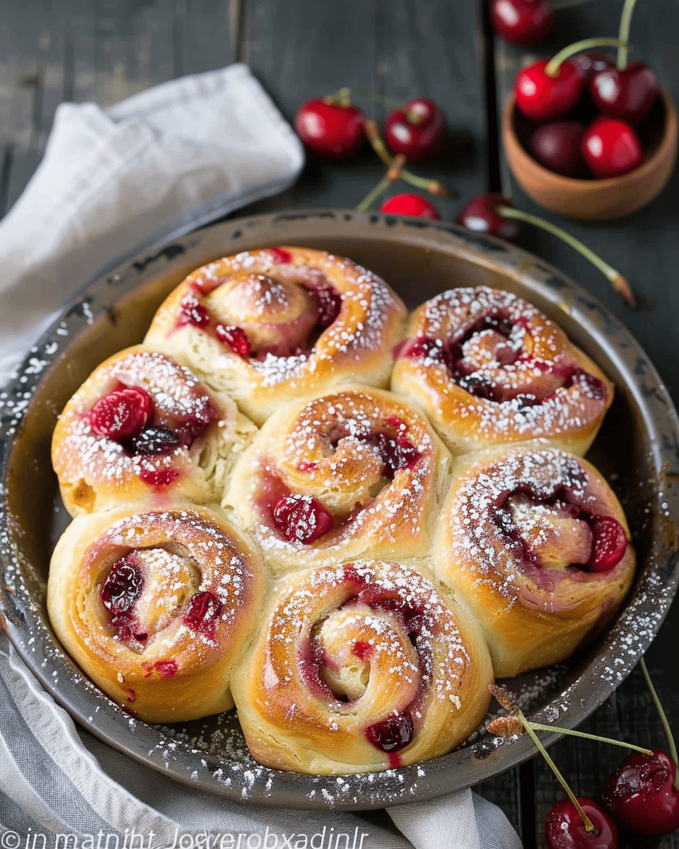 Fruit Filling: Replace cherries with other fruits like blueberries or raspberries.Cinnamon Rolls: For a cinnamon twist, skip the fruit filling and roll dough with cinnamon sugar.Nutty Twist: Add chopped walnuts or pecans to the cherry filling for extra flavor.