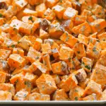Preheat oven to 400°F (200°C). Toss diced sweet potatoes with olive oil, salt, and pepper.