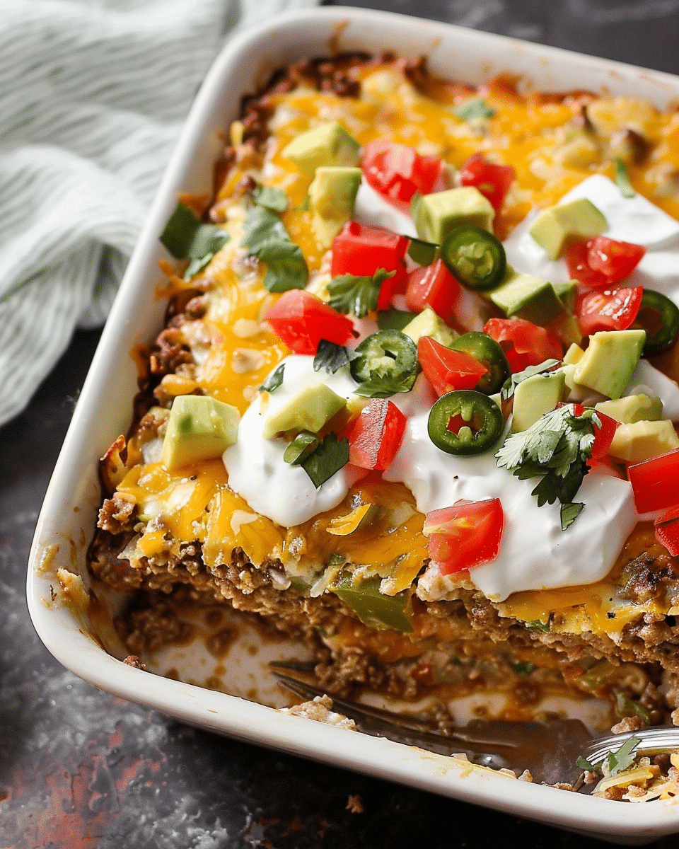 Taco Casserole is a delicious, family-friendly dish that combines the best parts of tacos in a single, satisfying bake. Easy to customize and perfect for any occasion, it’s a flavorful comfort food that’s sure to become a weeknight favorite. Serve it with your favorite toppings and enjoy all the vibrant, cheesy goodness of tacos — no shells required