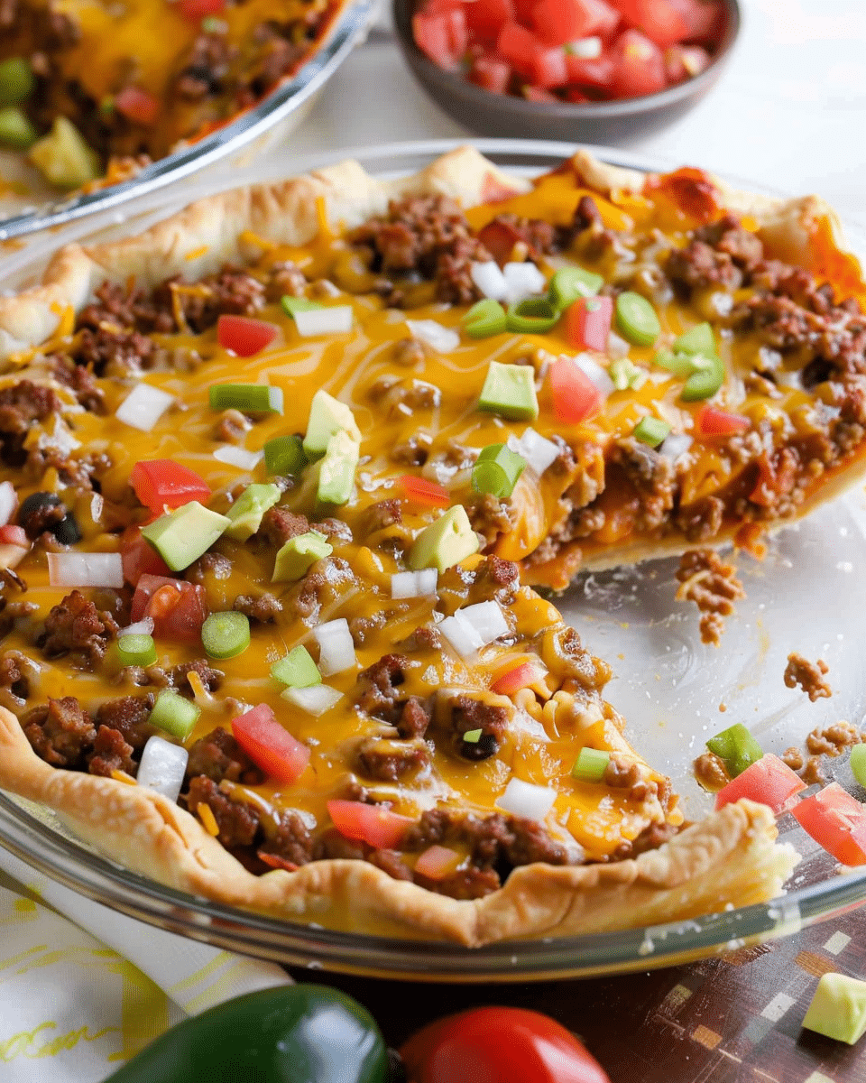 Taco Pie is the ultimate comfort food that brings together all the best taco flavors in one easy-to-make dish. It’s perfect for feeding a crowd and works great as a family dinner, party food, or even a potluck dish. The seasoned beef, melted cheese, and crunchy tortilla chips create a satisfying contrast in texture, while the fresh toppings like sour cream, lettuce, and salsa add a refreshing pop of flavor. Plus, it’s easy to customize with your favorite taco fillings and toppings, making it a versatile dish that everyone will enjoy.