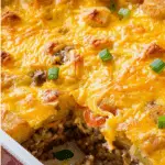 Tater Tot Breakfast Casserole is a hearty and cheesy all-in-one breakfast bake featuring crispy tater tots, , fluffy eggs, and melted cheddar cheese. It’s perfect for feeding a crowd or prepping for the week.